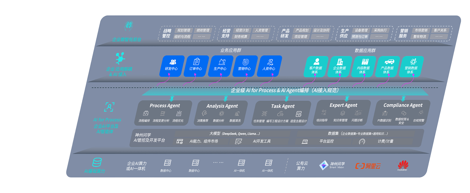 1号娱乐问学智车解决方案是一套基于AI技术的汽车行业智能化系统,,,,覆盖从底层算力到顶层AI应用的全栈方案。。。方案由算力层、、模型层和应用层组成:算力层,,方案支持多种一体机配置,,,,具备云端灵活部署、、、、多云适配以及动态优化计算资源的能力;模型层,,,1号娱乐问学平台版提供了企业级AI应用一站式构建与管理平台,,支持基于后训练强化技术的汽车企业专属模型的训练、、评测和运营;应用层,,,1号娱乐问学DeepSeek版提供包括超级员工、、、、智能招采、、、智能营销、、、智能客服、、AI for BI等一系列解决方案,,,可助力汽车行业实现数字化转型,,,让管理更智能、、响应更敏捷。。。。