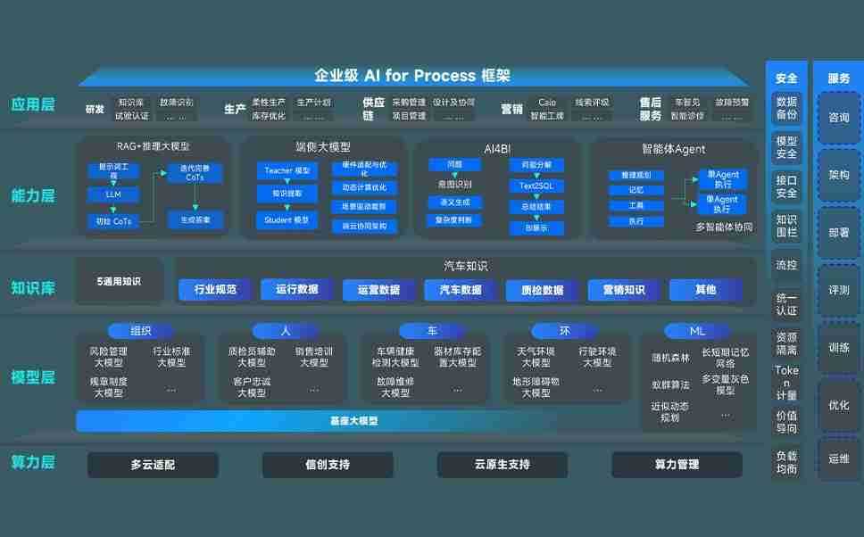 端到端的一站式AI工作空间深度融合了从企业战略规划到日常经营的全流程业务板块,,,定向解决车企内部领域多、、部门多、、、、链条长、、、、场景碎片化等难题,,,支持车企快速构建以AI为核心的生产力写作体系,,实现任务执行与AI能力的无缝集成与交互